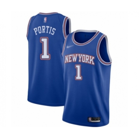 >Men's New York Knicks #1 Bobby Portis Authentic Blue Basketball Jersey - Statement Edition