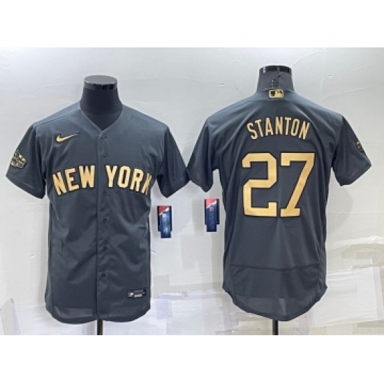 >Men's New York Yankees #27 Giancarlo Stanton Grey 2022 All Star Stitched Flex Base Nike Jers