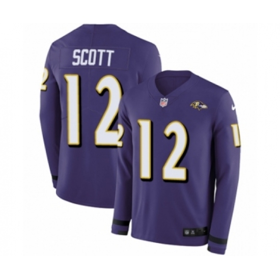 >Men's Nike Baltimore Ravens #12 Jaleel Scott Limited Purple Therma Long Sleeve NFL Jersey