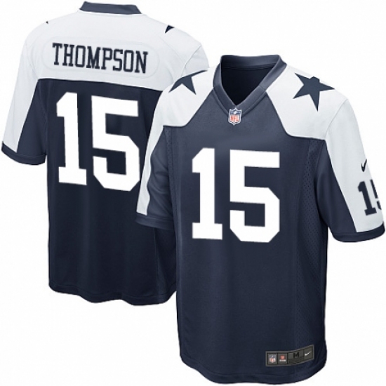 >Men's Nike Dallas Cowboys #15 Deonte Thompson Game Navy Blue Throwback Alternate NFL Jersey