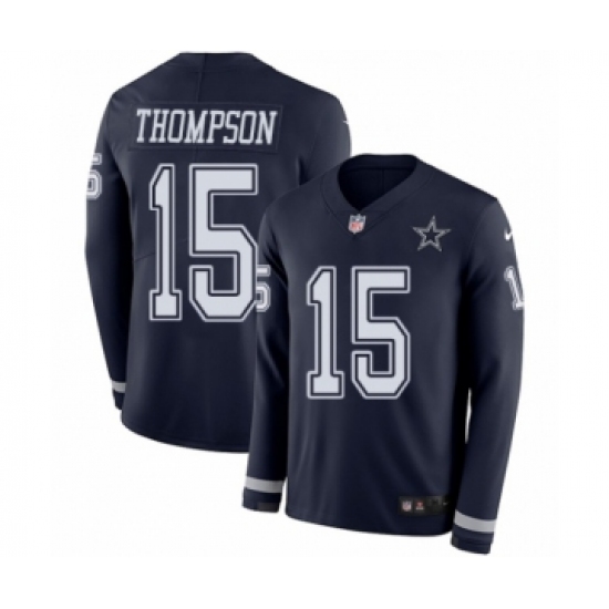 >Men's Nike Dallas Cowboys #15 Deonte Thompson Limited Navy Blue Therma Long Sleeve NFL Jersey