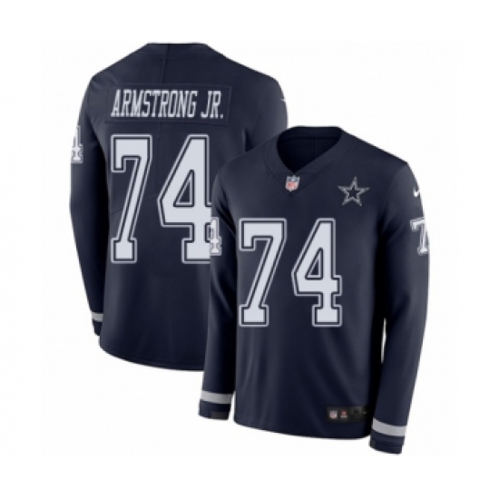 >Men's Nike Dallas Cowboys #74 Dorance Armstrong Jr. Limited Navy Blue Therma Long Sleeve NFL Jersey