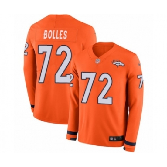 >Men's Nike Denver Broncos #72 Garett Bolles Limited Orange Therma Long Sleeve NFL Jersey