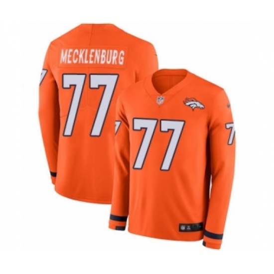 Men's Nike Denver Broncos #77 Karl Mecklenburg Limited Orange Therma Long Sleeve NFL Jersey