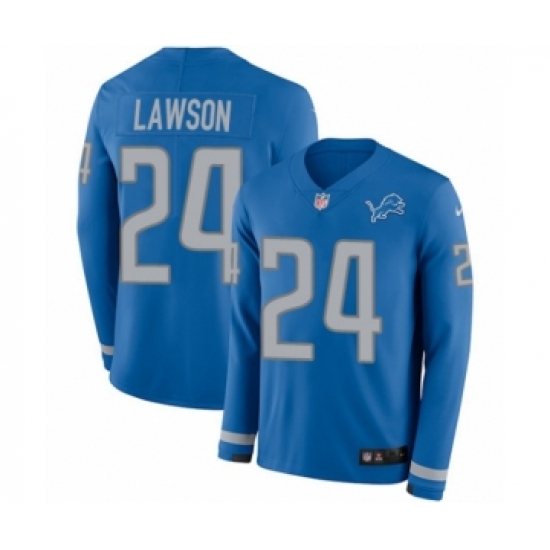 >Men's Nike Detroit Lions #24 Nevin Lawson Limited Blue Therma Long Sleeve NFL Jersey