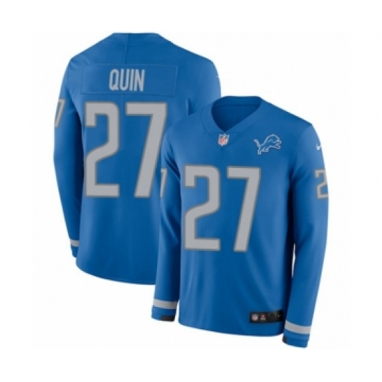 Men's Nike Detroit Lions #27 Glover Quin Limited Blue Therma Long Sleeve NFL Jersey