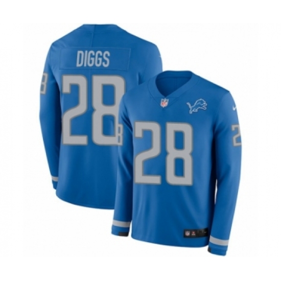 >Men's Nike Detroit Lions #28 Quandre Diggs Limited Blue Therma Long Sleeve NFL Jersey