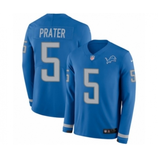 Men's Nike Detroit Lions #5 Matt Prater Limited Blue Therma Long Sleeve NFL Jersey