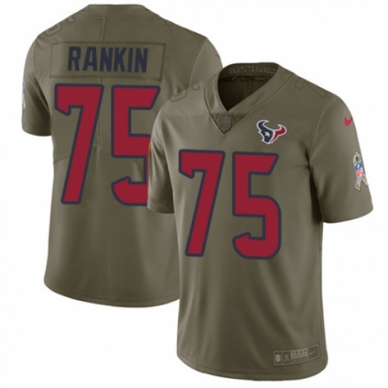 >Men's Nike Houston Texans #75 Martinas Rankin Limited Olive 2017 Salute to Service NFL Jersey