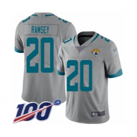 >Men's Nike Jacksonville Jaguars #20 Jalen Ramsey Silver Inverted Legend Limited 100th Season NFL Jersey