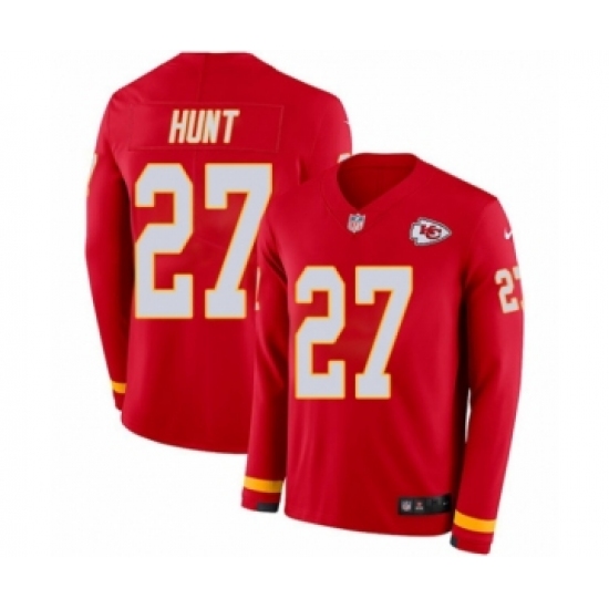 Men's Nike Kansas City Chiefs #27 Kareem Hunt Limited Red Therma Long Sleeve NFL Jersey