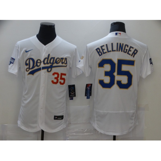 Men's Majestic Los Angeles Dodgers #35 Cody Bellinger White Home Flex Base Authentic Collection 2018 World Series MLB Jersey