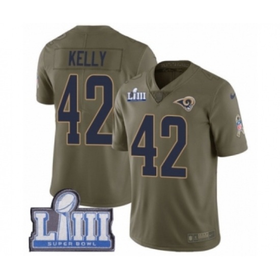 >Men's Nike Los Angeles Rams #42 John Kelly Limited Olive 2017 Salute to Service Super Bowl LIII Bound NFL Jersey