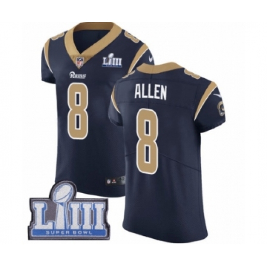 >Men's Nike Los Angeles Rams #8 Brandon Allen Navy Blue Team Color Vapor Untouchable Elite Player Super Bowl LIII Bound NFL Jersey