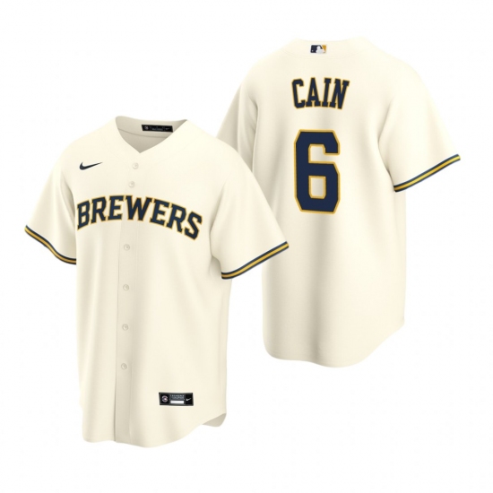 Men's Nike Milwaukee Brewers #6 Lorenzo Cain Cream Home Stitched Baseball Jersey