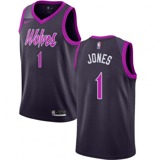 >Men's Nike Minnesota Timberwolves #1 Tyus Jones Swingman Purple NBA Jersey - City Edition