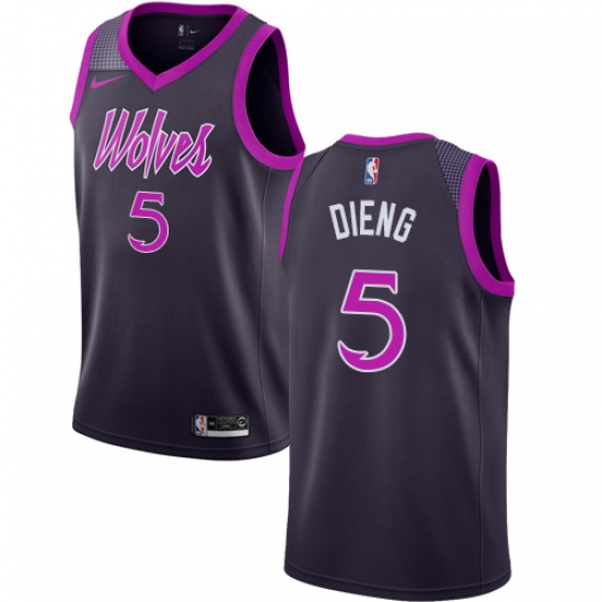 >Men's Nike Minnesota Timberwolves #5 Gorgui Dieng Swingman Purple NBA Jersey - City Edition