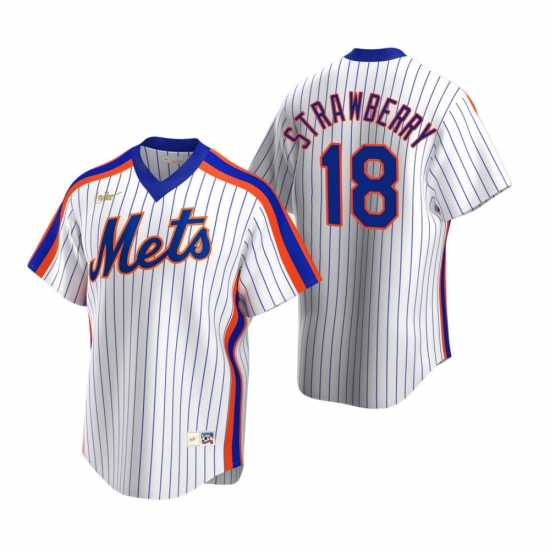 Men's Nike New York Mets #18 Darryl Strawberry White Cooperstown Collection Home Stitched Baseball Jersey