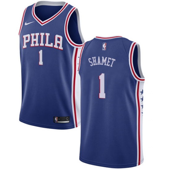 >Men's Nike Philadelphia 76ers #1 Landry Shamet Swingman Blue NBA Jersey - Icon Edition