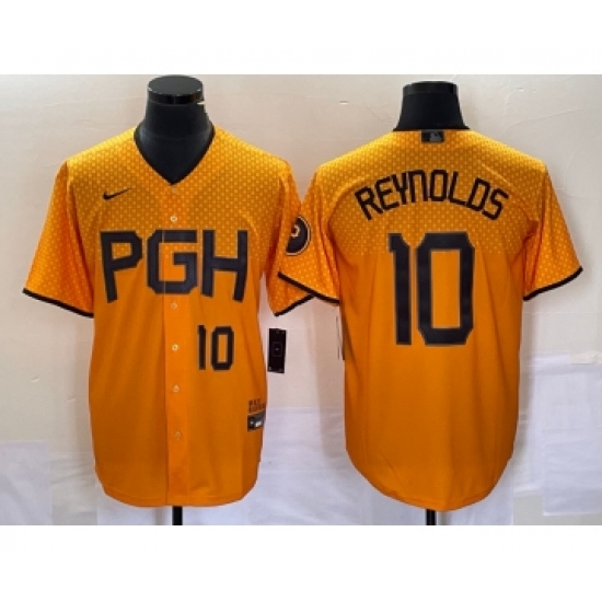 Men's Nike Pittsburgh Pirates #10 Bryan Reynolds Gold 2023 City Connect Stitched Jersey
