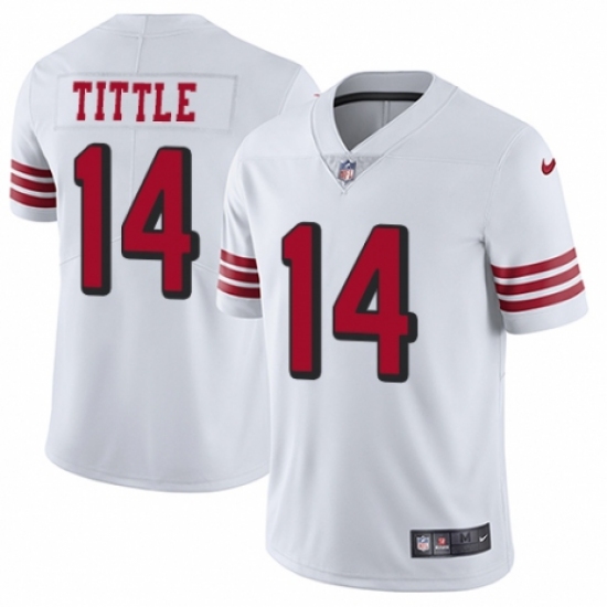 >Men's Nike San Francisco 49ers #14 Y.A. Tittle Limited White Rush Vapor Untouchable NFL Jersey