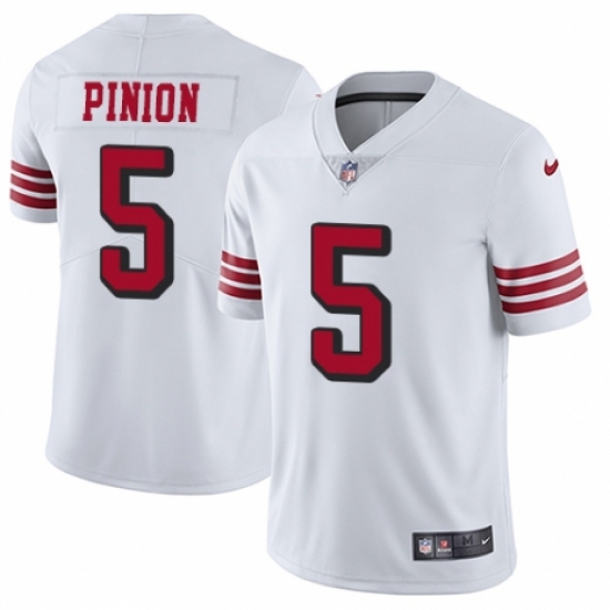 >Men's Nike San Francisco 49ers #5 Bradley Pinion Limited White Rush Vapor Untouchable NFL Jersey