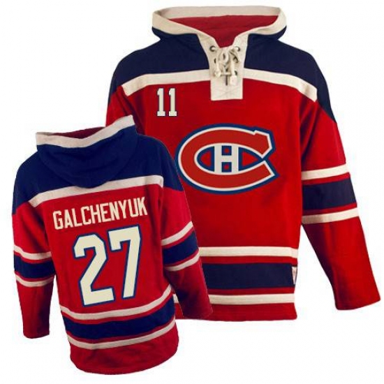 Men's Old Time Hockey Montreal Canadiens #27 Alex Galchenyuk Authentic Red Sawyer Hooded Sweatshirt NHL Jersey