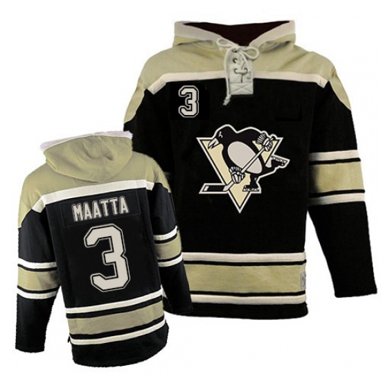 Men's Old Time Hockey Pittsburgh Penguins #3 Olli Maatta Premier Black Sawyer Hooded Sweatshirt NHL Jersey