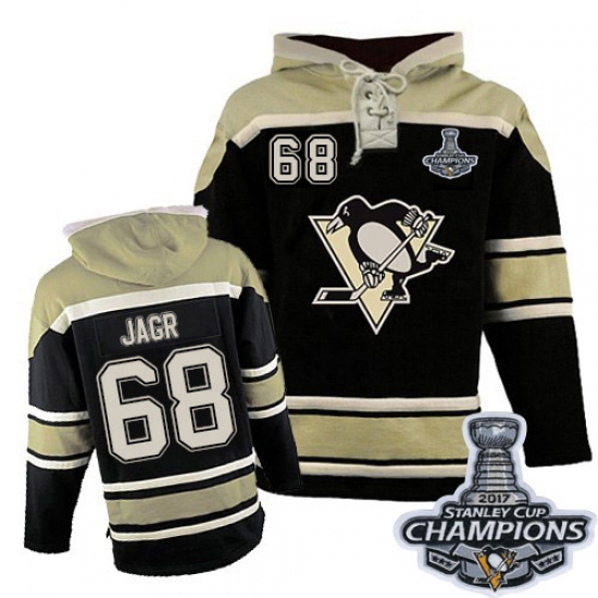 Men's Old Time Hockey Pittsburgh Penguins #68 Jaromir Jagr Premier Black Sawyer Hooded Sweatshirt 2017 Stanley Cup Champions