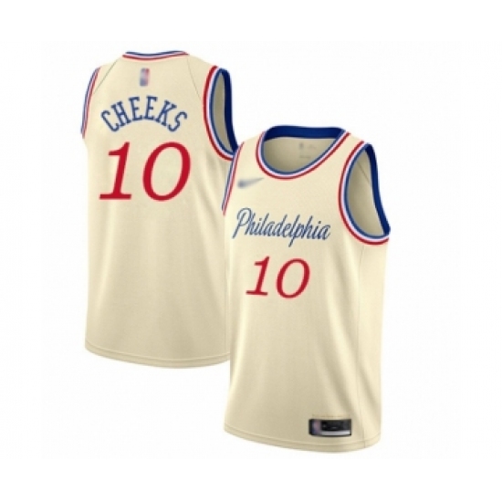 >Men's Philadelphia 76ers #10 Maurice Cheeks Swingman Cream Basketball Jersey - 2019 20 City Edition