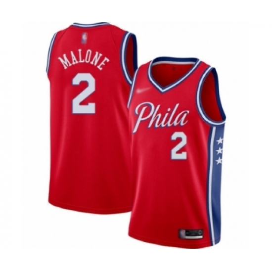 Men's Philadelphia 76ers #2 Moses Malone Authentic Red Finished Basketball Jersey - Statement Edition