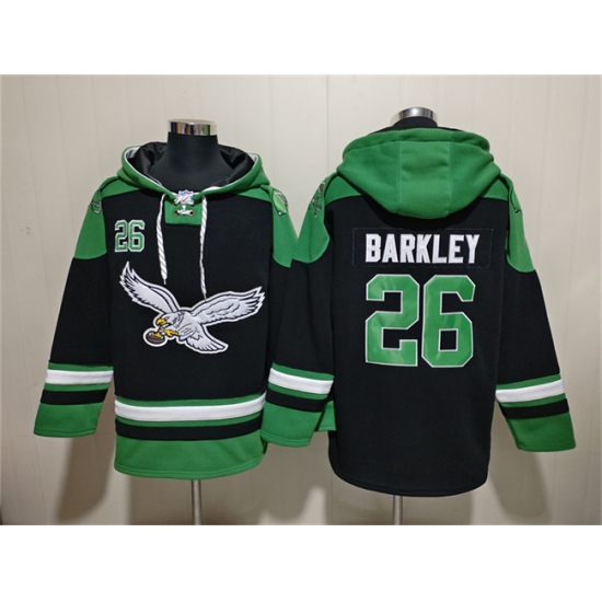 >Men's Philadelphia Eagles #26 Saquon Barkley Black Ageless Must-Have Lace-Up Pullover Hoodie