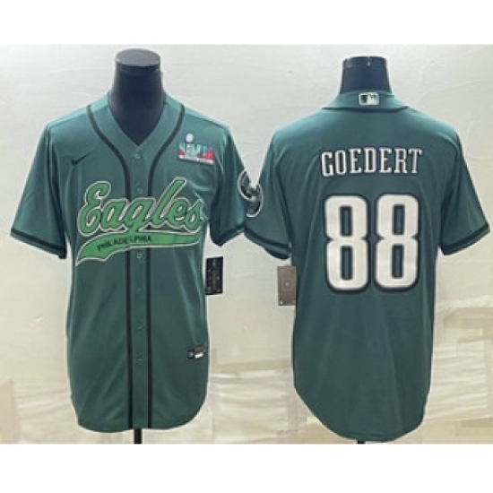 Men's Philadelphia Eagles #88 Dallas Goedert Green With Super Bowl LVII Patch Cool Base Stitched Baseball Jersey