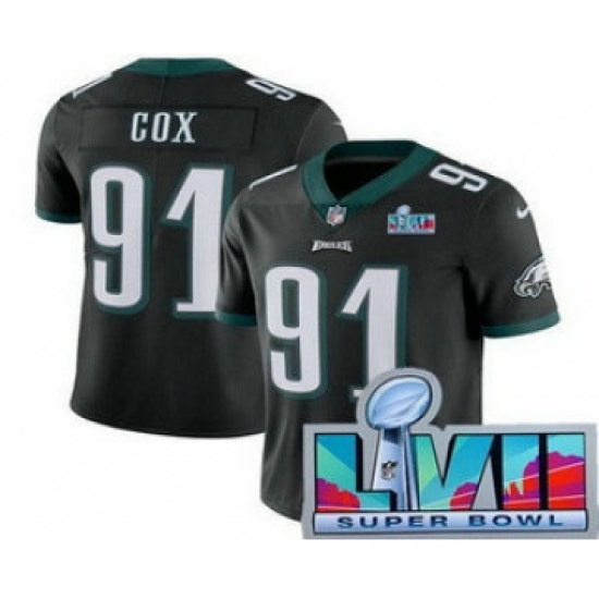 Men's Philadelphia Eagles #91 Fletcher Cox Limited Black Super Bowl LVII Vapor Jersey