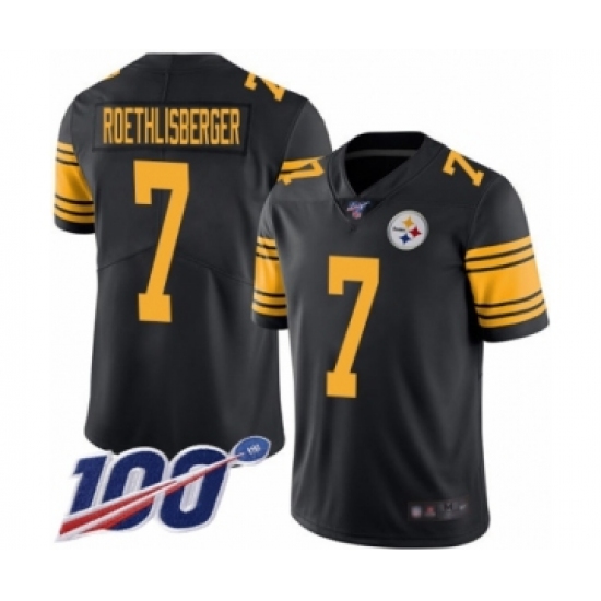 >Men's Pittsburgh Steelers #7 Ben Roethlisberger Limited Black Rush Vapor Untouchable 100th Season Football Jersey