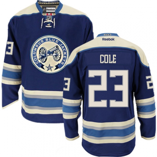 >Men's Reebok Columbus Blue Jackets #23 Ian Cole Authentic Navy Blue Third NHL Jersey