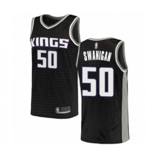 >Men's Sacramento Kings #50 Caleb Swanigan Authentic Black Basketball Jersey Statement Edition