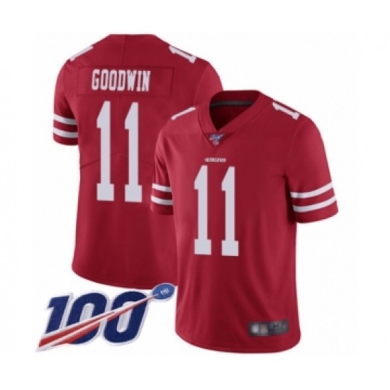 Men's San Francisco 49ers #11 Marquise Goodwin Red Team Color Vapor Untouchable Limited Player 100th Season Football Jersey