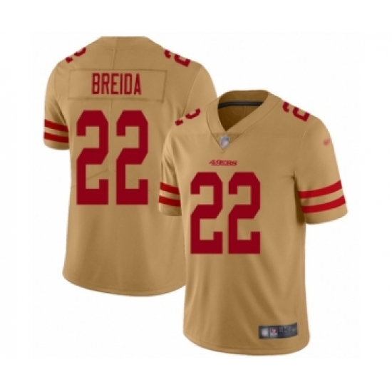 Men's San Francisco 49ers #22 Matt Breida Limited Gold Inverted Legend Football Jersey