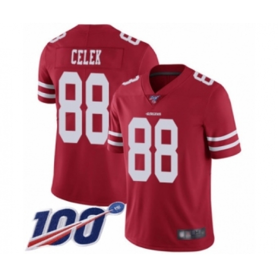 Men's San Francisco 49ers #88 Garrett Celek Red Team Color Vapor Untouchable Limited Player 100th Season Football Jersey