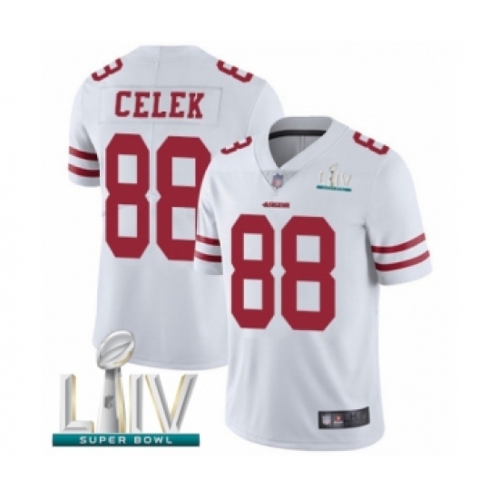 >Men's San Francisco 49ers #88 Garrett Celek White Vapor Untouchable Limited Player Super Bowl LIV Bound Football Jersey