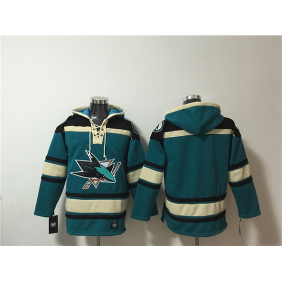 Home>Hoodie>NHL Hoodie>San Jose Sharks>Men's San Jose Sharks Blank Teal Lace-Up Pullover Hoodie