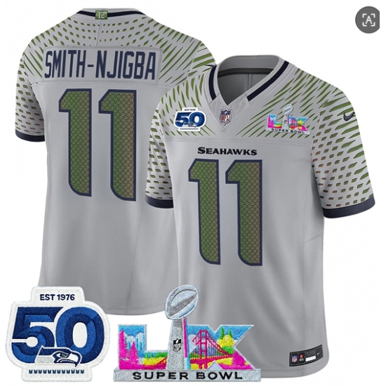Men's Seattle Seahawks #11 Jaxon Smith-Njigba Gray 2025 F.U.S.E. Super Bowl LX And 50th Season “Rivalries” Vapor Limited Football Stitched Jersey