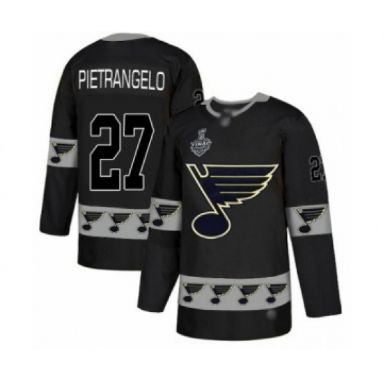 Men's St. Louis Blues #27 Alex Pietrangelo Authentic Black Team Logo Fashion 2019 Stanley Cup Final Bound Hockey Jersey
