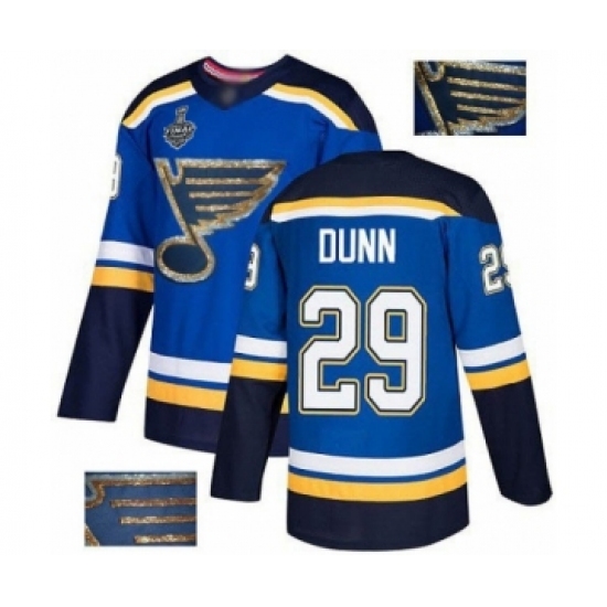 Men's St. Louis Blues #29 Vince Dunn Authentic Royal Blue Fashion Gold 2019 Stanley Cup Final Bound Hockey Jersey