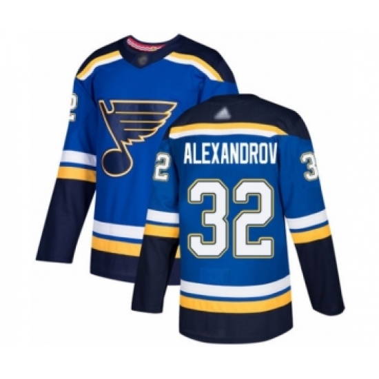 >Men's St. Louis Blues #32 Nikita Alexandrov Authentic Royal Blue Home Hockey Jersey