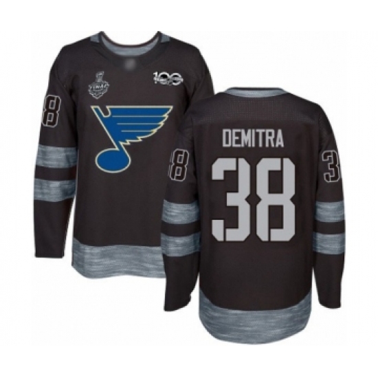 Men's St. Louis Blues #38 Pavol Demitra Authentic Black 1917-2017 100th Anniversary 2019 Stanley Cup Final Bound Hockey Jersey