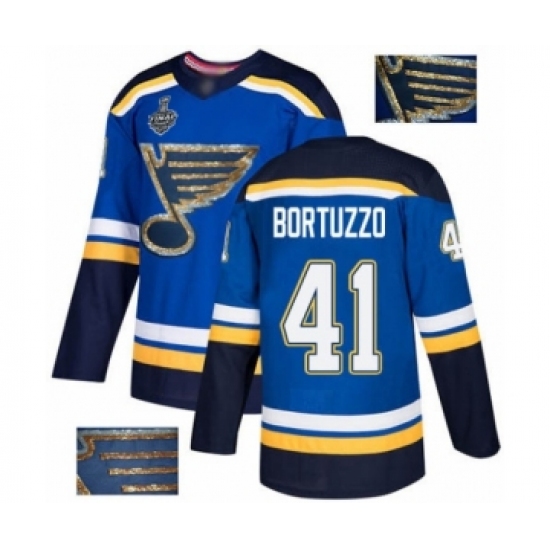 >Men's St. Louis Blues #41 Robert Bortuzzo Authentic Royal Blue Fashion Gold 2019 Stanley Cup Final Bound Hockey Jersey