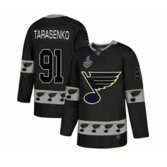 Men's St. Louis Blues #91 Vladimir Tarasenko Authentic Black Team Logo Fashion 2019 Stanley Cup Final Bound Hockey Jersey