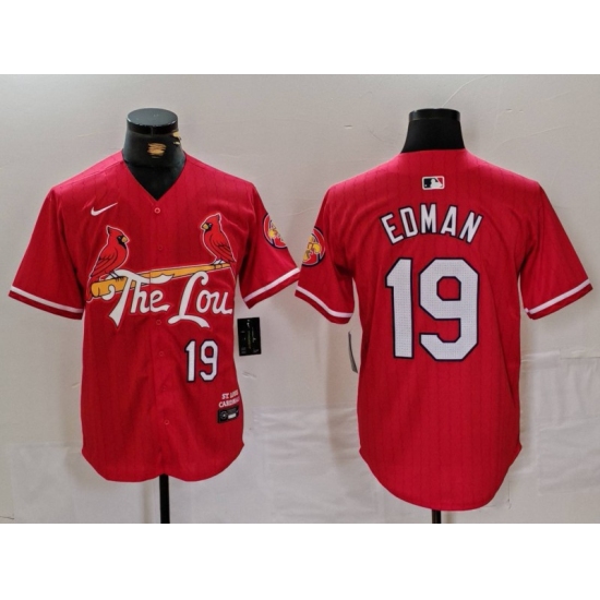 Men's St Louis Cardinals #19 Tommy Edman Red 2024 City Connect Stitched Baseball Jersey